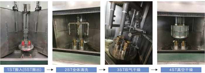 搬入→ 全體清洗 → 吹氣干燥 → 真空干燥 → 搬出